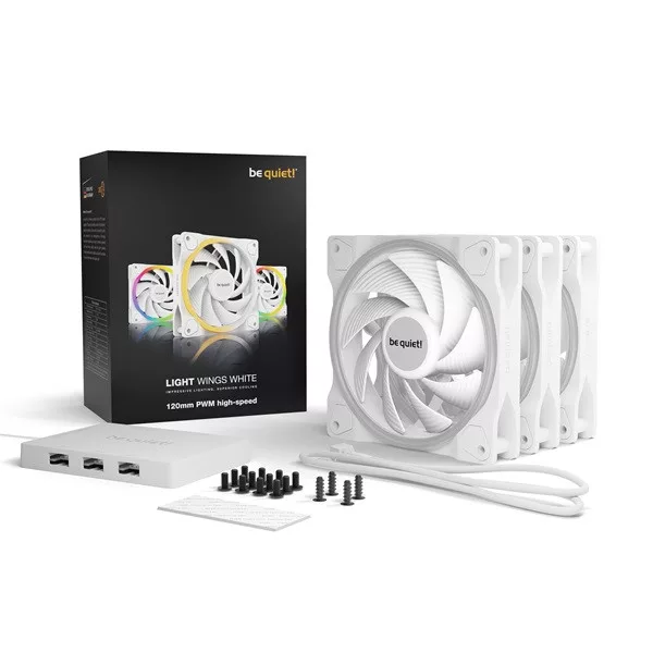 Be Quiet! Cooler 12cm - LIGHT WINGS WHITE 120mm PWM high-speed Triple-Pack – ARGB látvány és nagy fordulatszámú hűtés