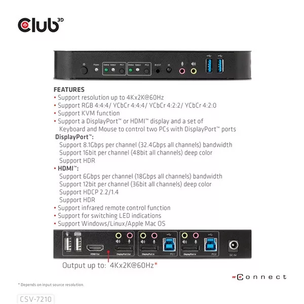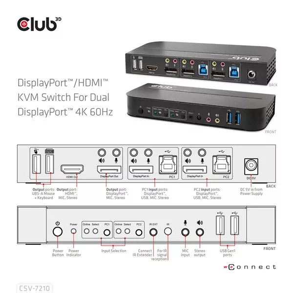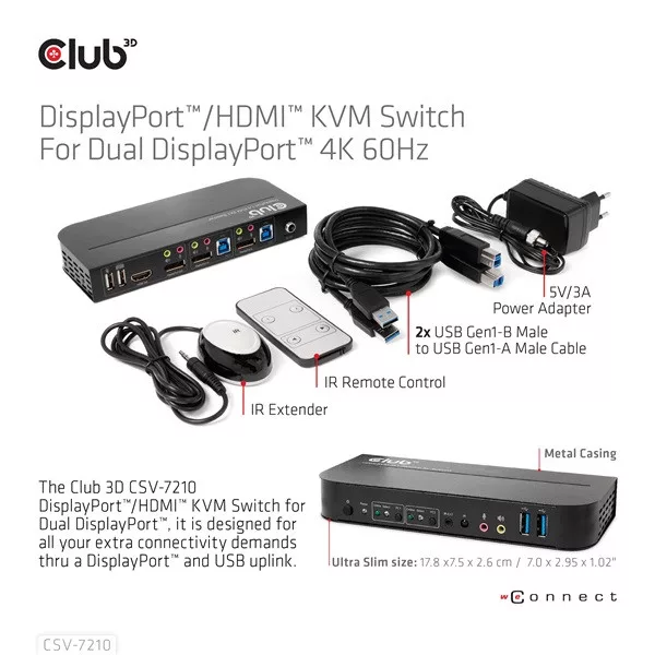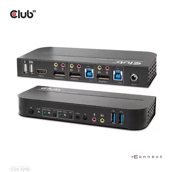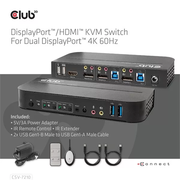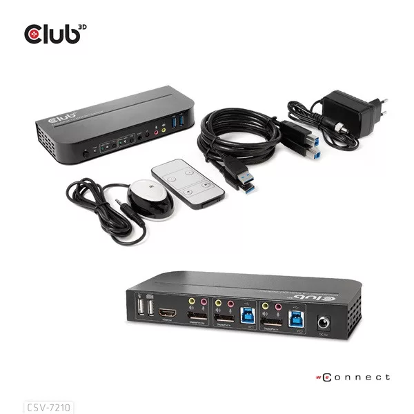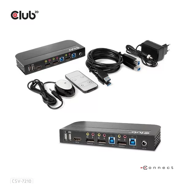 Club 3D KVM Switch - CSV-7210 (Dual DisplayPort, 4K60Hz, HDMI, KVM, IR távirányító)