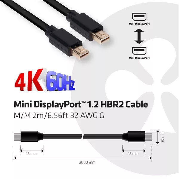 A Club 3D által gyártott, HBR2 szabványú, 2 méteres kábel ideális laptop és monitor, dokkoló és kijelző, illetve más Mini DisplayPort-kompatibilis eszközök közötti kapcsolathoz. A DisplayPort 1.2 specifikációnak megfelelő kialakítás megbízható adatátvitelt és részletgazdag képet biztosít mind irodai, mind otthoni felhasználásnál.