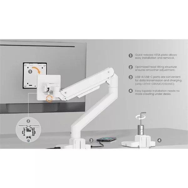 Ez az asztali monitortartó 17 és 49 col közötti kijelzőkkel használható, maximális terhelhetősége 20 kg. A dönthető és forgatható kialakítás segít pontosan beállítani a nézési szöget. Ez különösen hasznos szélesvásznú monitor, ívelt kijelző vagy nagy képátlójú irodai monitor esetén.