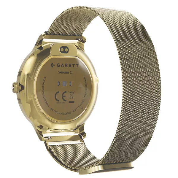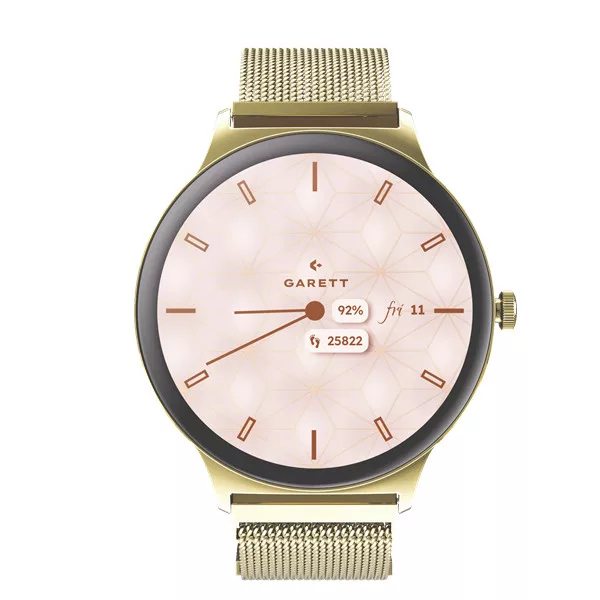 smartwatch GARETT, kiegészítő fehér bőrszíj, USB-C töltőállvány, gyors útmutató