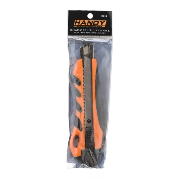 A Handy Univerzális kés - 10814 (18mm törhető penge) jól használható csomagbontáshoz, irodai és raktári feladatokhoz, valamint háztartási és barkács munkákhoz is.