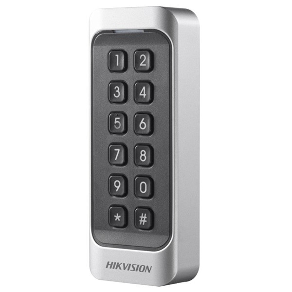 A DS-K1107AMK beépített billentyűzettel rendelkezik, ezért a rendszer kialakításától függően kártyás, PIN-kódos vagy kombinált beléptetésre is használható.