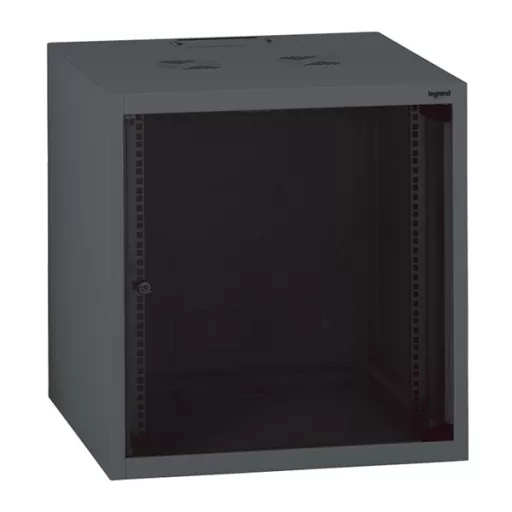Legrand Rackszekrény - 19" fali kivitel (12U, 626x600x600, antracit, egyrekeszes, üvegajtós, készre szerelt, max: 36 kg)
