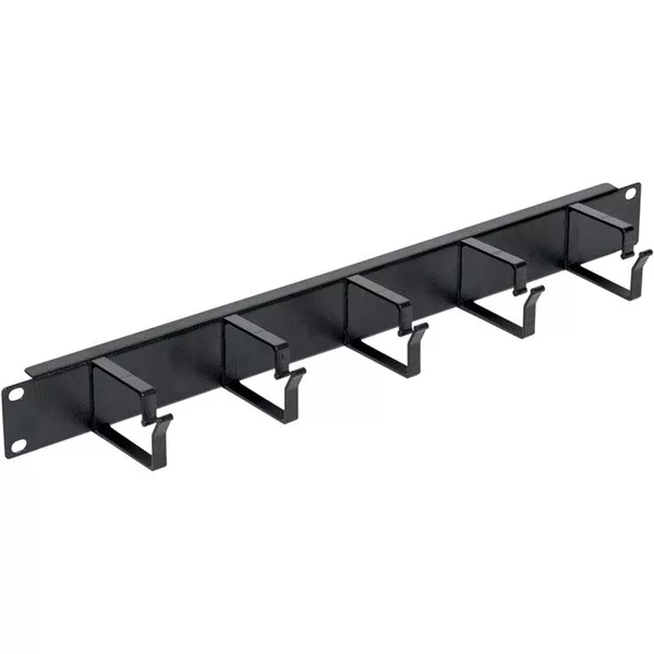 19" profilsínre szerelhető panelek a patch kábelek vízszintes rendezésére Vízszintes irányú gyűrűket tartalmazó gyűrűs rendező panelek Rögzítő elemekkel szállítva (kosaras anya/alátét/csavar) RAL 9005 - fekete