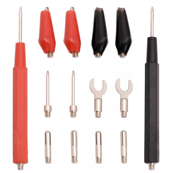 A 16 darabos összeállítás előnye, hogy nem kell külön-külön beszerezni az alap mérővezetékeket és a különféle csatlakoztatható végeket. Ez gyorsabb munkát tesz lehetővé, ha eltérő mérési pontokkal dolgozol.