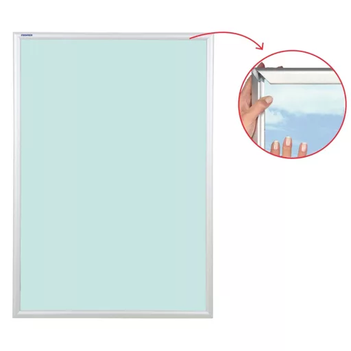 A keret kialakítása lehetővé teszi, hogy az aktuális posztert, hirdetményt vagy tájékoztatót különösebb szerelés nélkül, rövid idő alatt cseréld. Ez különösen hasznos, ha gyakran frissül a tartalom.