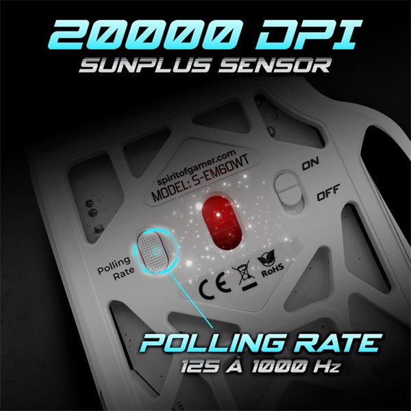 Spirit of Gamer Egér - ELITE-M60 White (Optikai, 8000DPI, 1000Hz, 9 programozható gomb, RGB, vezetékes, fehér)