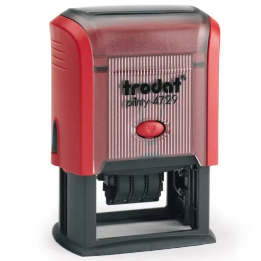 A Trodat 4729 Dátumbélyegző ( 50 X 30 Mm) Lenyomattal mérete ideális ahhoz, hogy a dátum mellett cégnév, osztálymegjelölés, ügyviteli szöveg vagy rövid státusz is elférjen egyetlen lenyomaton.