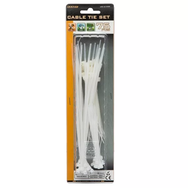 A kötegelők Nylon 66 anyaga jó mechanikai tulajdonságokkal rendelkezik, ezért a szett alkalmas mindennapi kábelrendezési és általános rögzítési feladatokra is.