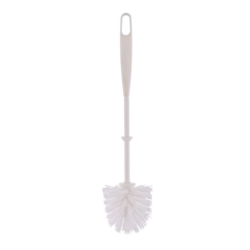 A gömbölyű kefefej hatékonyan követi a WC belső ívét, a nyél végén található akasztó pedig megkönnyítheti a tárolást vagy a kompatibilis tartóba helyezést.
