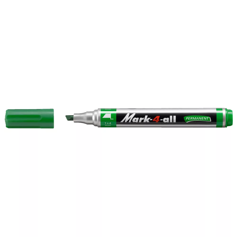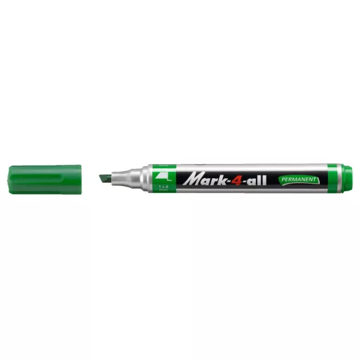 A Alkoholos marker 1-4mm, vágott S Stabilo Mark-4-all 653/36 zöld nem csak papíron működik jól. Műanyag, fém, fa, kerámia és textil felületen is praktikus, ezért irodában és műhelyben egyaránt sokoldalú eszköz.