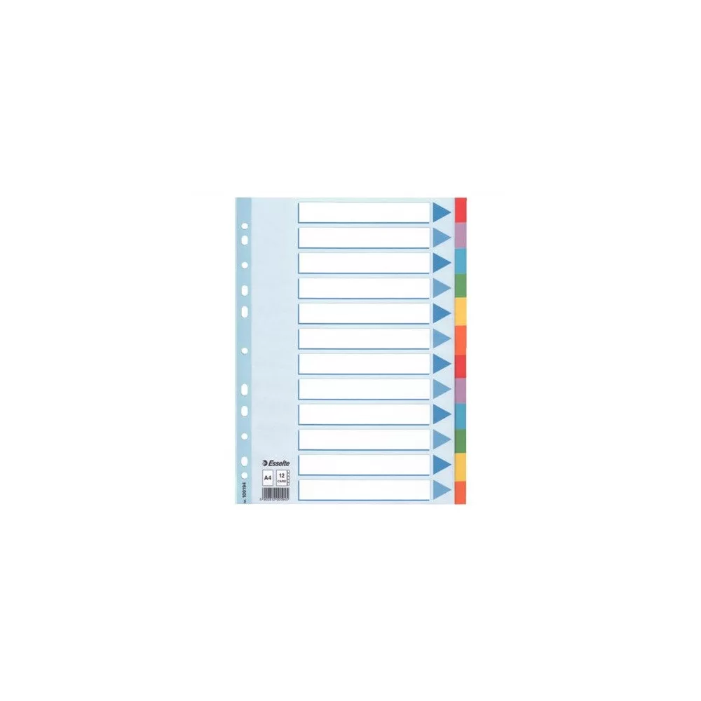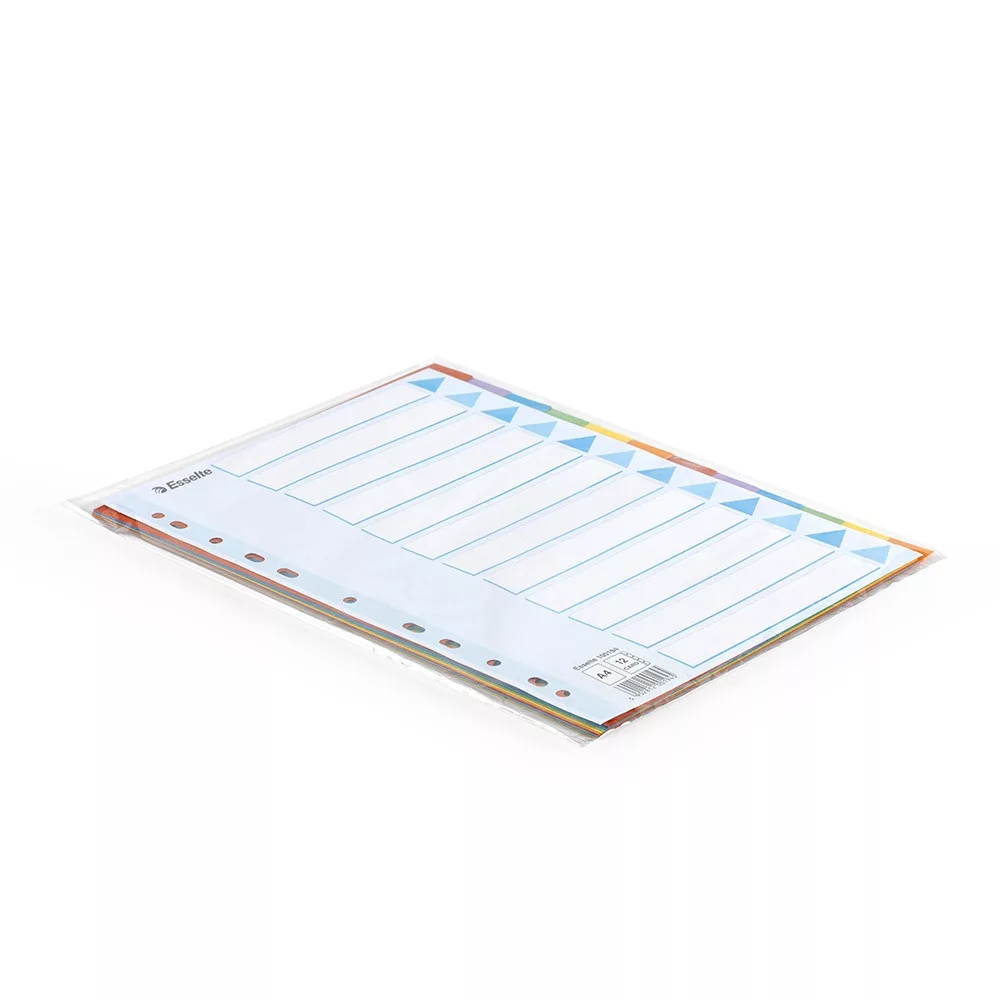 Elválasztólap, színes karton 12 részes Esselte – A Elválasztólap, színes karton 12 részes Esselte megbízható iratrendezési kiegészítő, amely gyorsabbá és átláthatóbbá teszi a munkát.