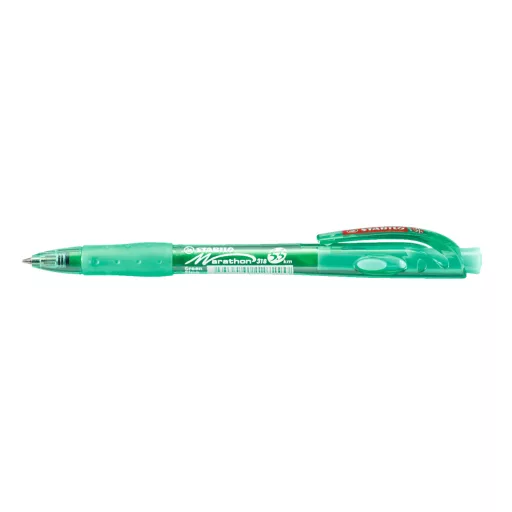 A Golyóstoll 0,38mm, Stabilo Marathon 318/36, írásszín zöld vékony, rendezett és jól kontrollálható vonalat húz. Ez előnyös akkor, ha kisebb betűmérettel írsz, sok megjegyzést készítesz, vagy nyomtatványokat, táblázatokat töltesz ki.