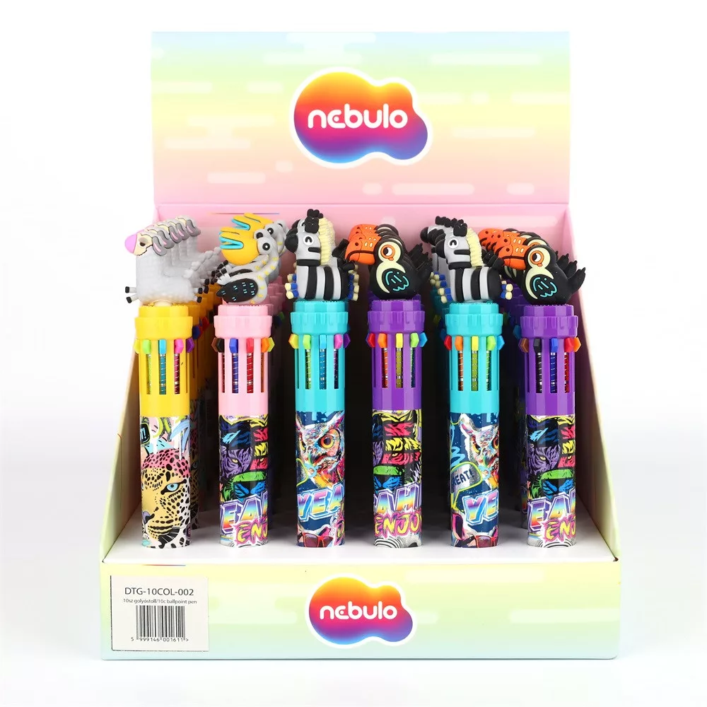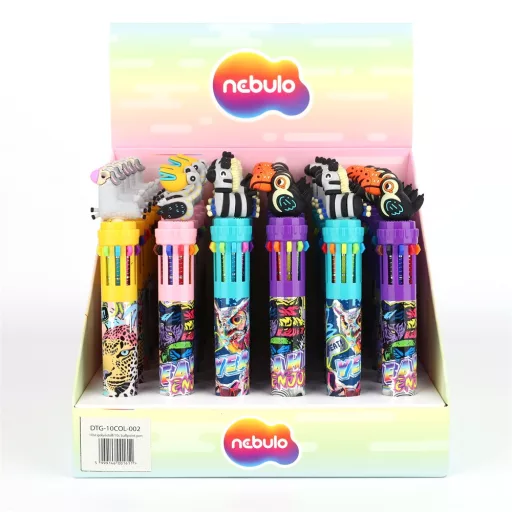 Jól jönne egy olyan írószer, ami már első pillantásra felkelti a gyerekek figyelmét, mégis praktikus a mindennapi használatban? A Golyóstoll 10színű, safari, 30 db/display Nebulo látványos, mintás tolltesttel és többféle színváltozatban kínál játékos megjelenést, miközben a Nebulo márkától elvárt, iskolai környezetben is jól használható kivitelben érkezik.