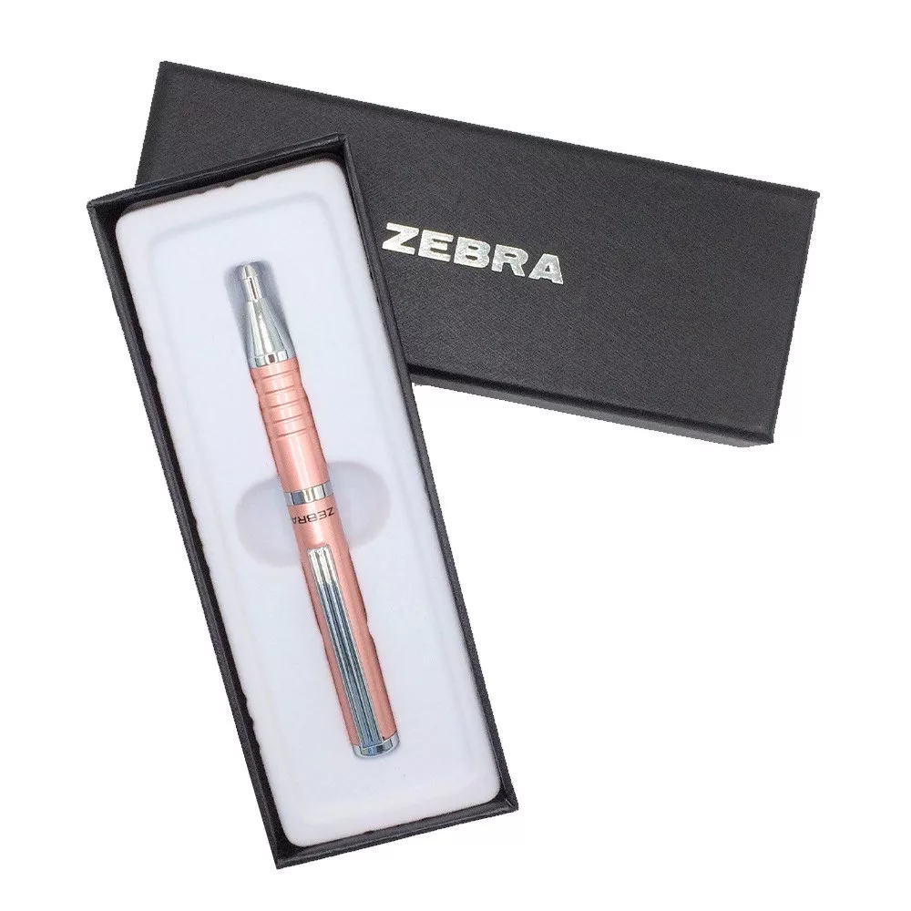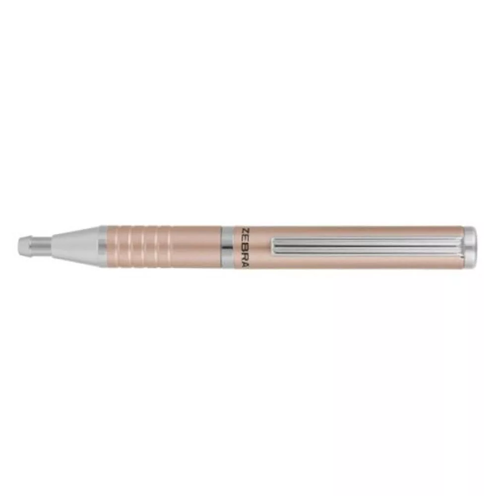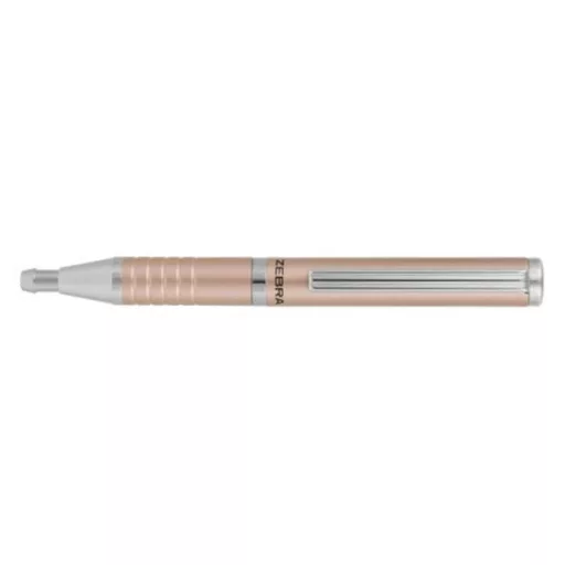 A Zebra SLF1 modell rozsdamentes acél tolltesttel, teleszkópos, szétcsúsztatható kialakítással és 0,24 mm írásvastagsággal dolgozik. A rose gold árnyalat kifinomult megjelenést ad, a kék írásszín pedig üzleti és iskolai környezetben is praktikus választás.