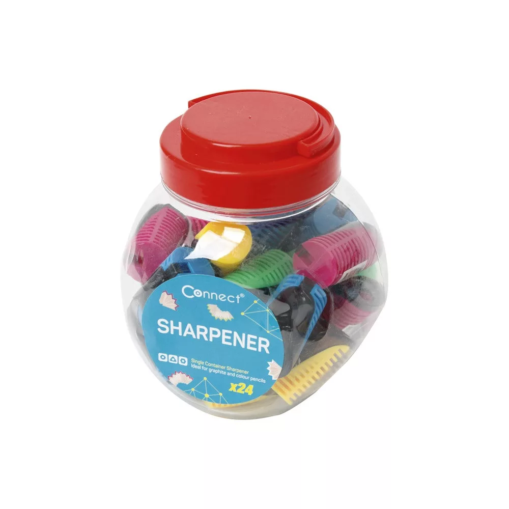 Hegyező 1 lyukú műanyag, tartályos Connect különféle színek – A Hegyező 1 lyukú műanyag, tartályos Connect különféle színek tiszta, gyors ceruzahegyezést biztosít iskolai és irodai környezetben.