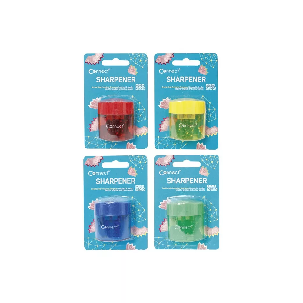 Hegyező 2 lyukú műanyag, tartályos Connect bliszteres – A Hegyező 2 lyukú műanyag, tartályos Connect bliszteres tiszta, gyors ceruzahegyezést biztosít iskolai és irodai környezetben.