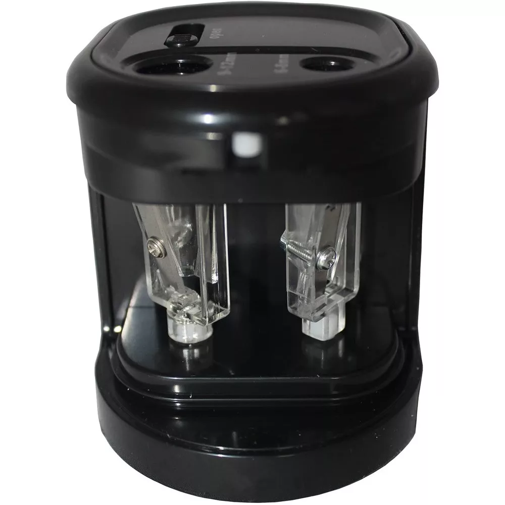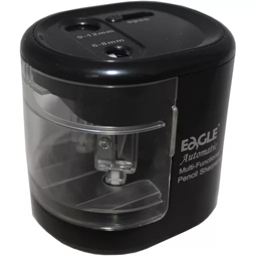 Hegyező asztali 2 lyukú elektromos elemes és hállózati adapterrel működtethető EG5161 Eagle fekete – A Hegyező asztali 2 lyukú elektromos elemes és hállózati adapterrel működtethető EG5161 Eagle fekete tiszta, gyors ceruzahegyezést biztosít iskolai és irodai környezetben.