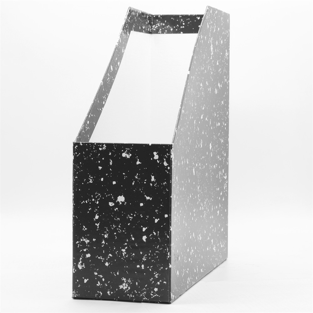 A Iratpapucs 9cm, karton, Bluering® márvány-mákos fekete megfelelő helyet ad nagyobb mennyiségű nyomtatványnak is, így kisebb irodákban, recepciós pultnál vagy otthoni dolgozósarokban is jól használható.