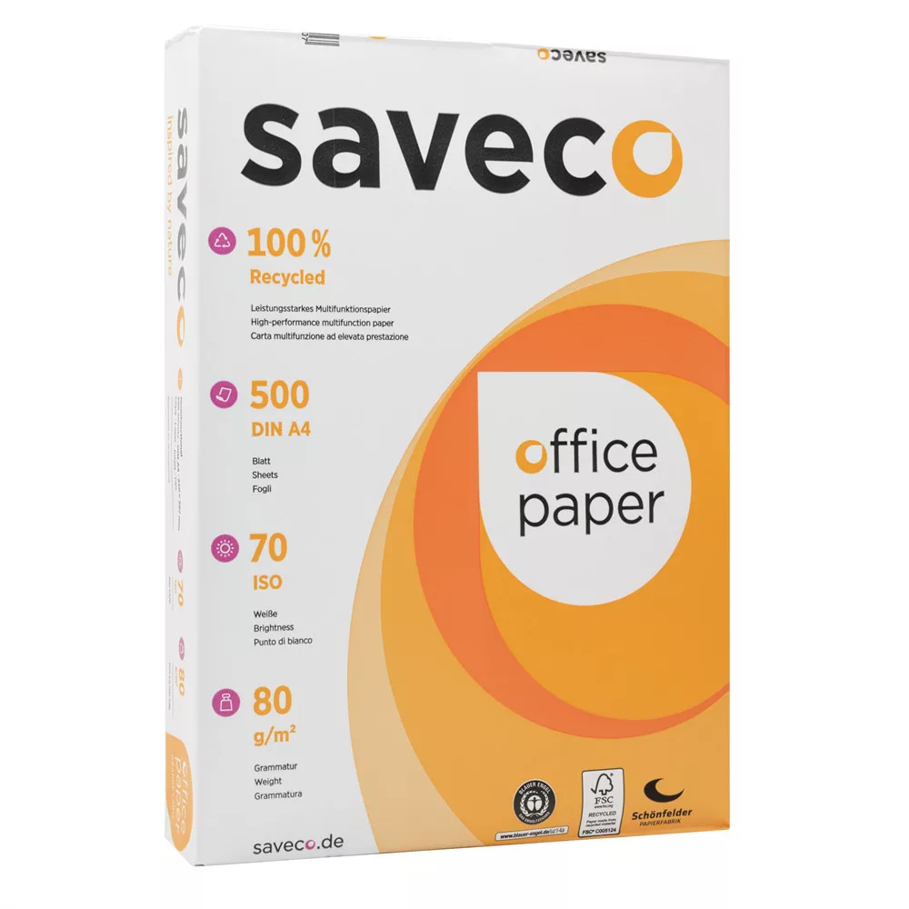 A Másolópapír A4, 80g, újrahasznosított ISO 70 fehérségű Saveco Orange Label 500ív/csomag előnye, hogy környezettudatosabb beszerzést tesz lehetővé ott is, ahol rendszeresen nagyobb mennyiségű papír fogy.