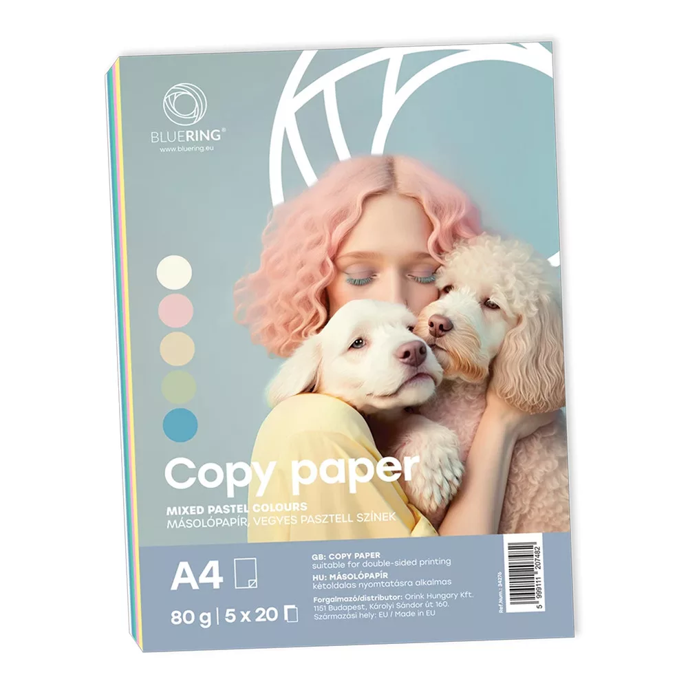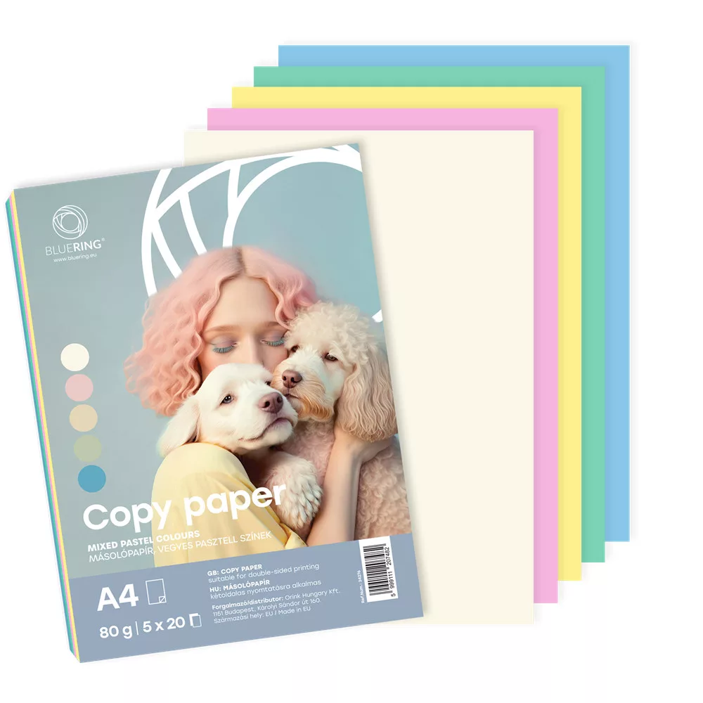 Másolópapír, színes, vegyes színek A4, 80 g Bluering® 5x20 ív/csomag, pasztell színes