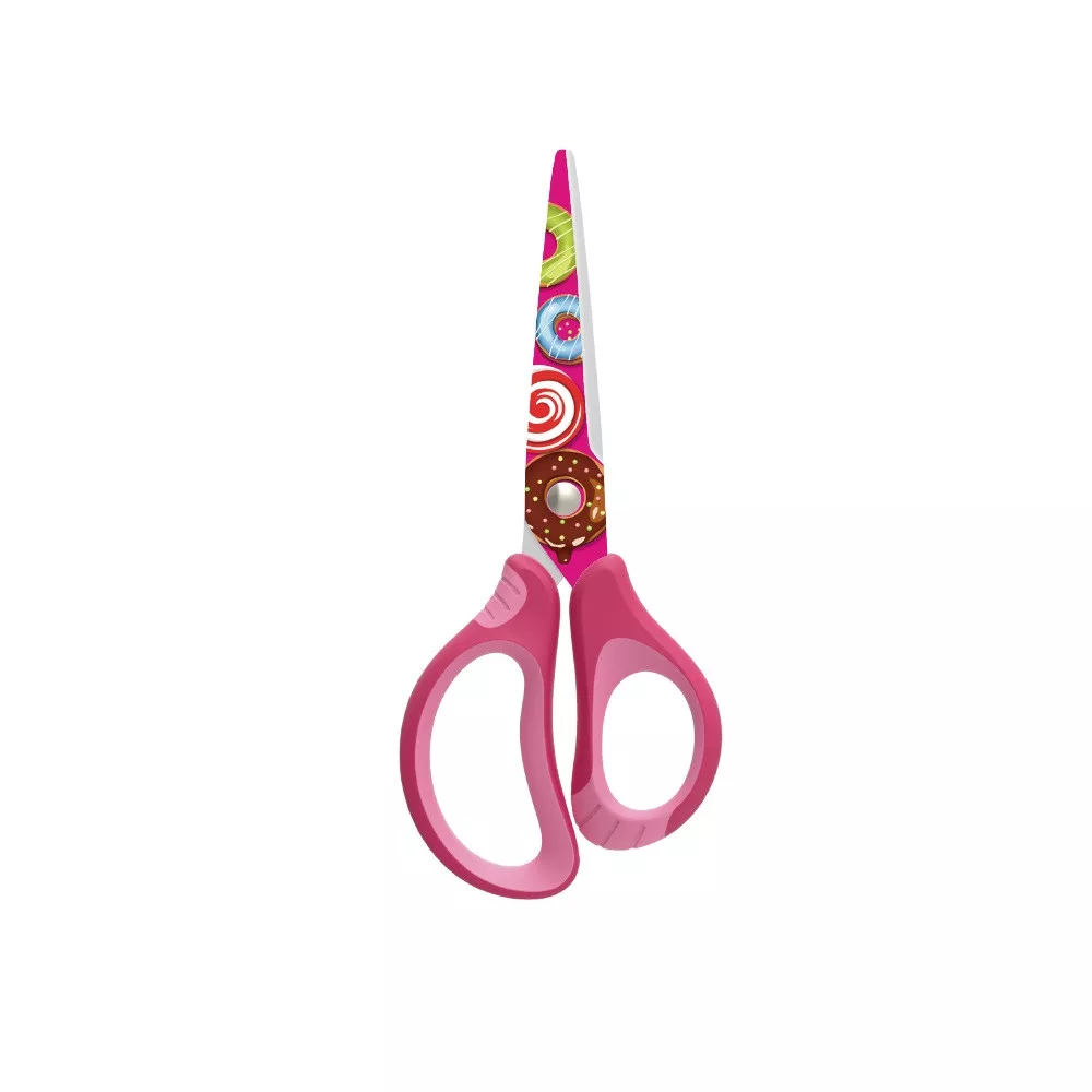 Ez a változat hegyes fejű kivitel, ezért pontosabb kivágási feladatokra is alkalmasabb, mint a lekerekített végű iskolai ollók. Papírhoz, rajzlaphoz és vékony kartonhoz jól használható.