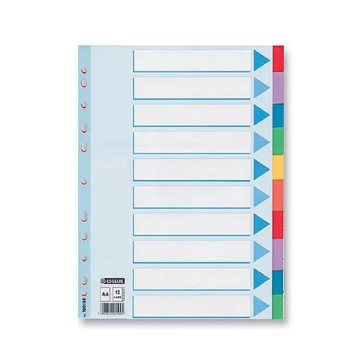 A Regiszter műanyag A4 Maxi 10 részes Esselte összesen 10 külön szekció kialakítását teszi lehetővé. Ez ideális lehet például hónapok, ügyféltípusok, projektek vagy dokumentumfajták szerinti bontáshoz.