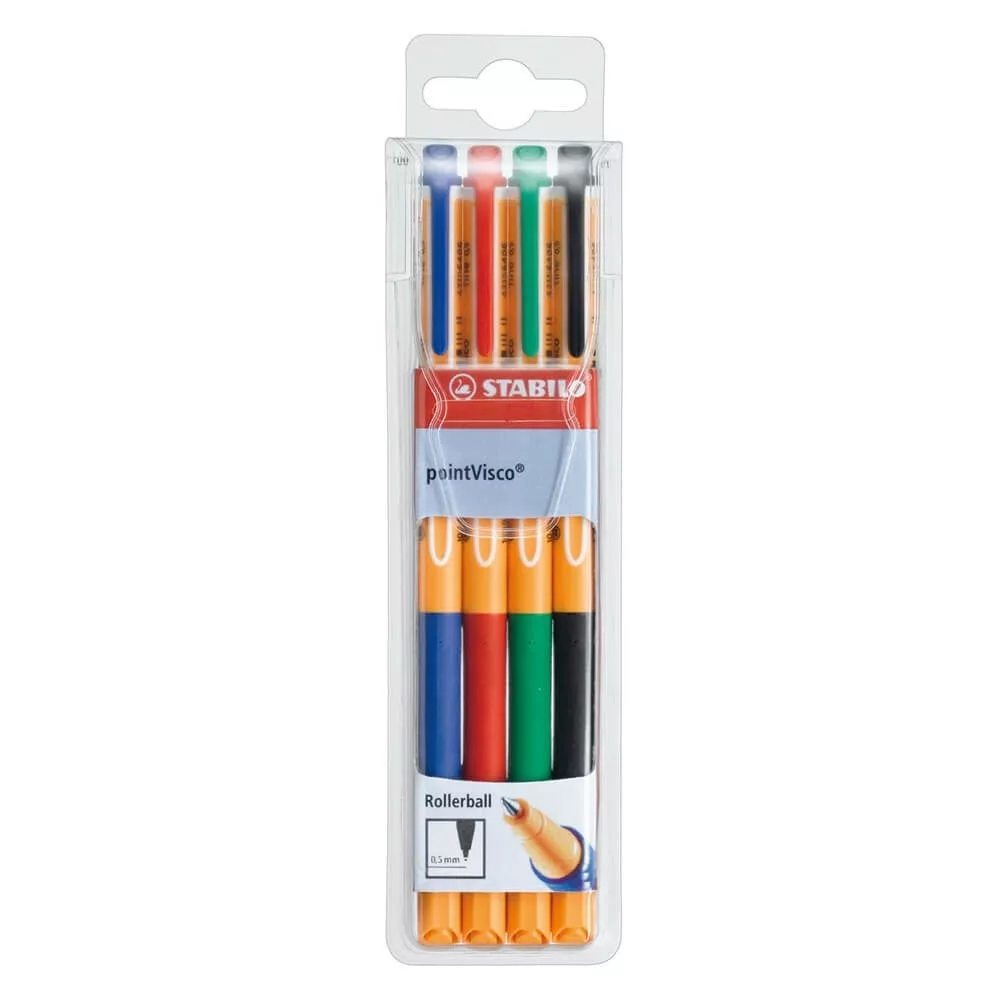 Rollertoll zselés készlet 0,5mm, STABILO PointVisco, 4 klf. szín