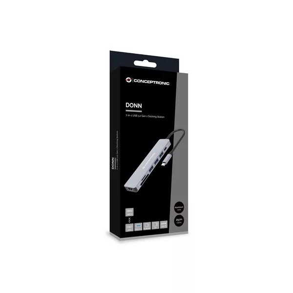 DONN19G 7-in-1 USB 3.2 Gen 1 Docking Station, HDMI, USB-A 3.0 x 3, SD, TF/MicroSD, 100W USB PD