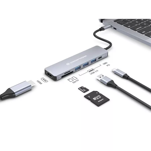 - 7-in-1 USB-C to HDMI/USB-C PD/USB 3.0/SD/TF multiport adapter