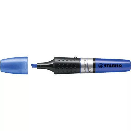 A STABILO névhez illő kidolgozás itt is érezhető: a 2-5 mm vonalvastagságú vágott hegy rugalmasan használható keskeny aláhúzáshoz és szélesebb sorjelöléshez is, a kék tinta pedig jól elkülöníthető a klasszikus sárga vagy rózsaszín kiemelésektől. A Luminator sorozat különlegessége a nagy tintatartály, az egyenletes tintaadagolás és a praktikus töltöttségi szintjelző.