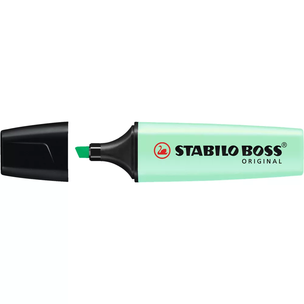 Ha munka vagy tanulás közben néha nyitva marad a kupak, ez a tulajdonság sok bosszúságtól kímél meg. A STABILO BOSS Original Pastel menta ezért intenzív, megszakításokkal tarkított használatnál is praktikus.
