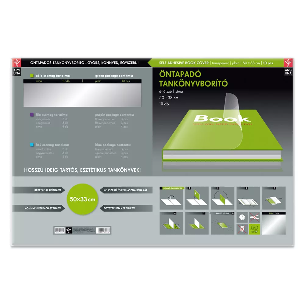 Tankönyvborító öntapadó, 50x33cm, 10 ív/csomag, Ars Una, víztiszta – A Tankönyvborító öntapadó, 50x33cm, 10 ív/csomag, Ars Una, víztiszta megbízható iskolai/irodai kiegészítő, amely megkönnyíti a mindennapi feladatokat.