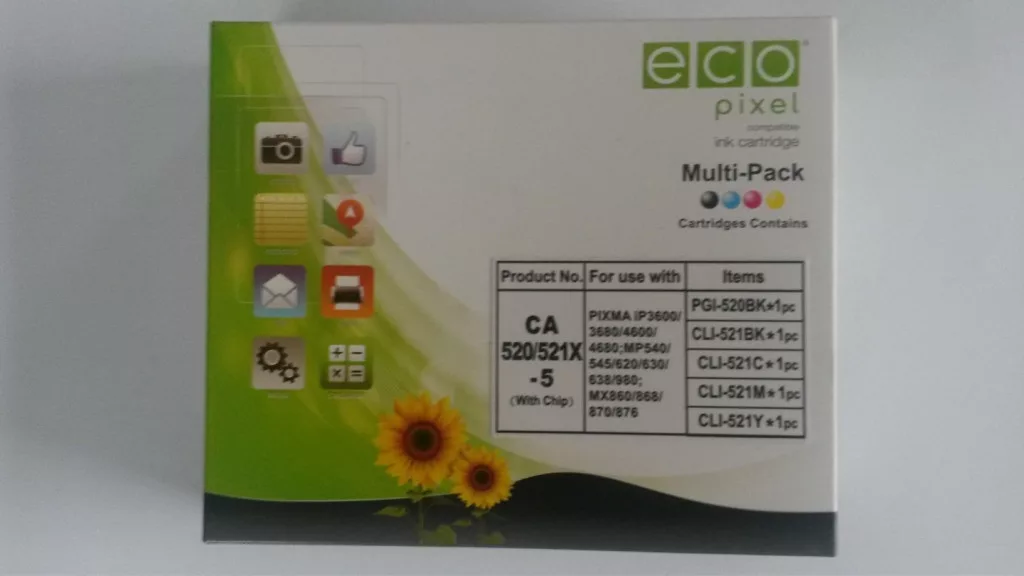Ha a nyomtatód PGI-520BK és CLI-521 patronokat használ, ezzel az Utángyártott CANON CLI-521 Tintapatron Multipack BKCMY 5 db-os ECOPIXEL csomaggal egyben beszerezheted a szükséges kellékanyagokat.