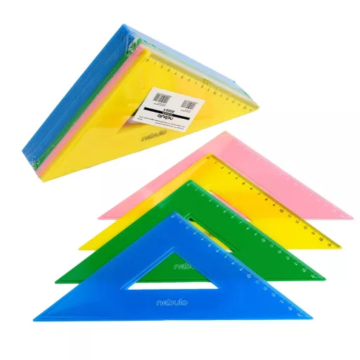 Vonalzó, 15 cm-es, 45°-os, vegyes színek, Nebulo – A Vonalzó, 15 cm-es, 45°-os, vegyes színek, Nebulo pontos méréshez és szerkesztéshez készült, jól olvasható beosztással iskolai és irodai használatra.